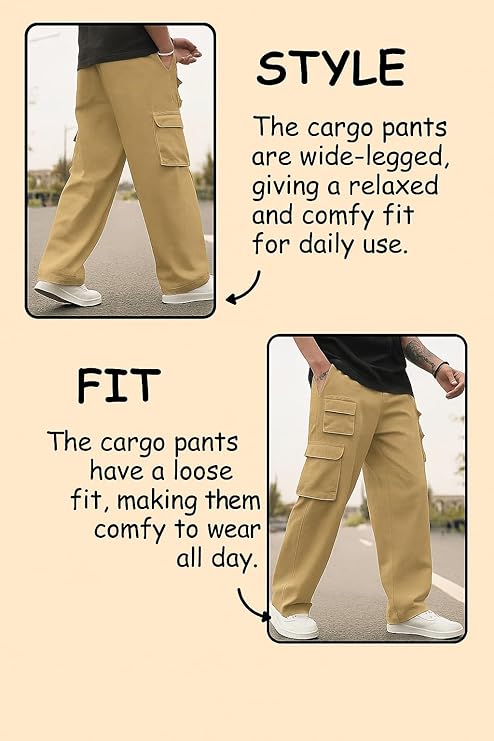 The relaxed regular fit provides ease of movement, while the adjustable drawstring waist ensures a secure, personalized fit. These full-length cargo pants come with multiple spacious pockets, making them both stylish and functional for casual outings, travel, outdoor activities, or daily errands.
