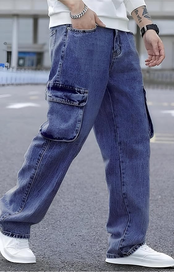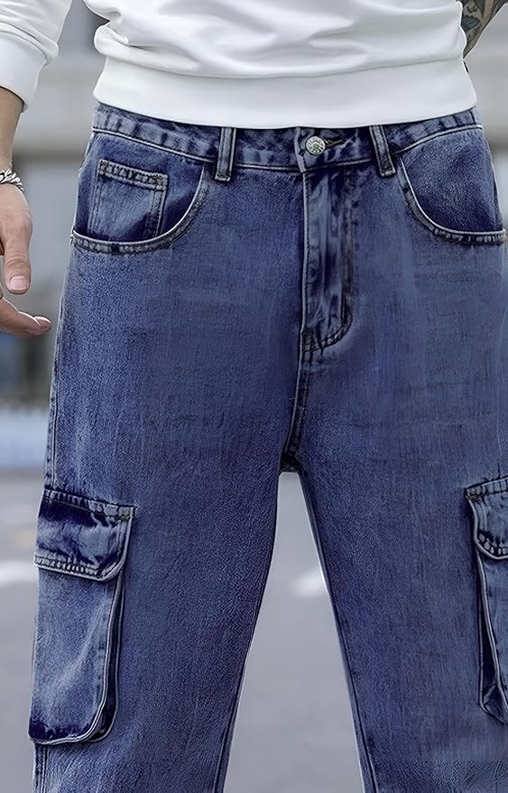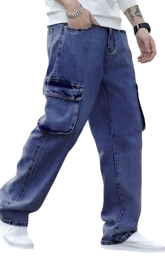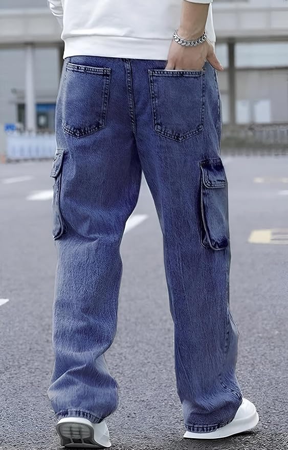 Ben Martin Men's Denim Cotton Cargo Jeans || Stretchable Baggy Fit || High Waist Loose Cargos for Men with Box Pockets || Stylish Gen-Z Streetwear