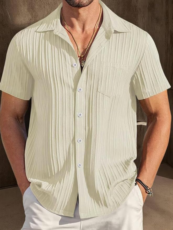 Casual Shirts |Half Sleeve|Line Textured|Solid Regular Fit Shirt