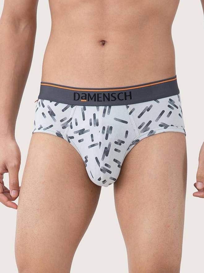 DAMENSCH Men's Regular Fit Printed Cotton Briefs | Combed Cotton, Stretchy Fabric, Anti-Bacterial
