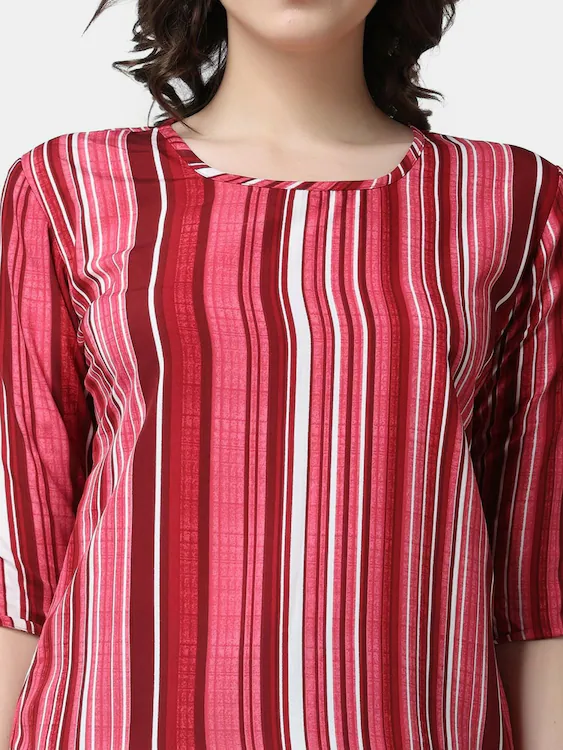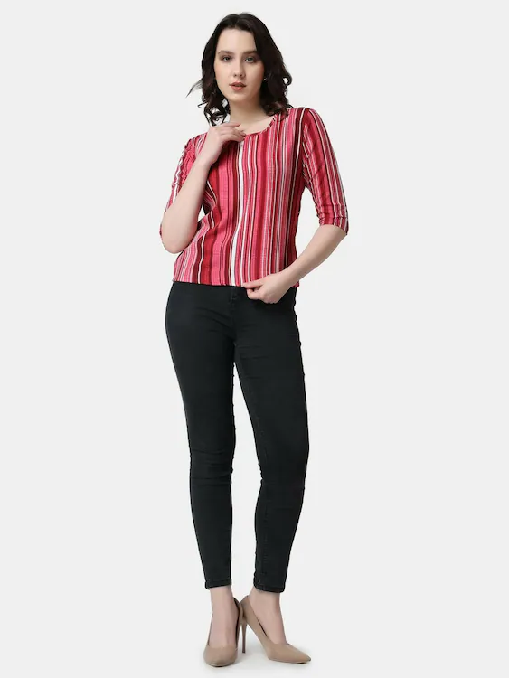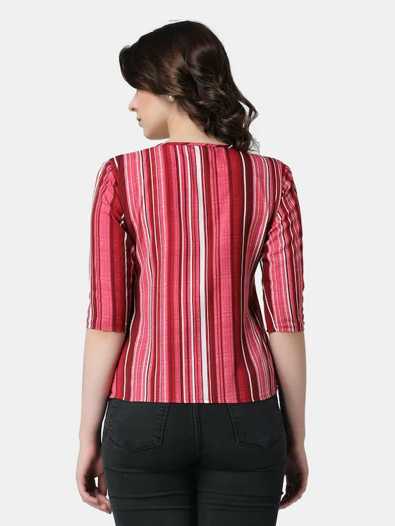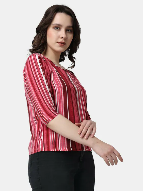 Upgrade your wardrobe with the Friendswells Casual Women’s Pink Striped Printed Top, designed for women who love comfort without compromising on fashion. This stylish top features a flattering round neckline, 3/4th sleeves, and elegant stripe patterns, making it a versatile choice for every occasion.
