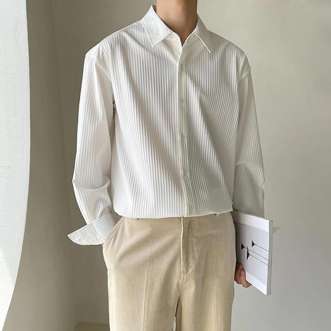 GRECIILOOKS Mens Formal Button Down Shirt – Slim Fit Polycotton Shirt's for Men | Textured Full Sleeve| Business & Meeting Ready