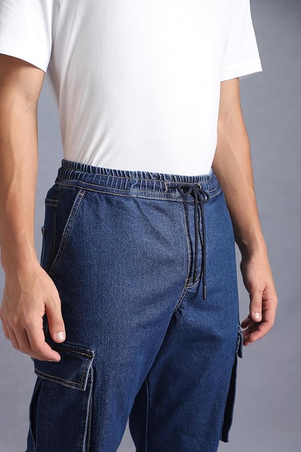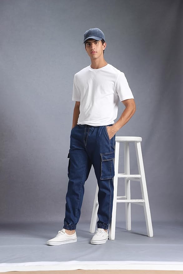 INKD Men's Regular Fit Joggers - Mid -Rise | Cotton Blend | Stretchable Fabric| Elasticated Waistband | Jeans for Men