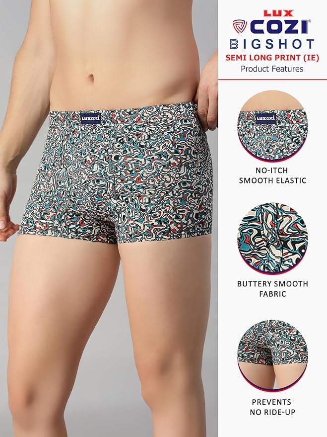 Lux Cozi Mens 100% Cotton Printed Mini Trunk | Printed Mini Trunk for Men | Color and Print May Vary | Mini Trunk for Men Pack of 3