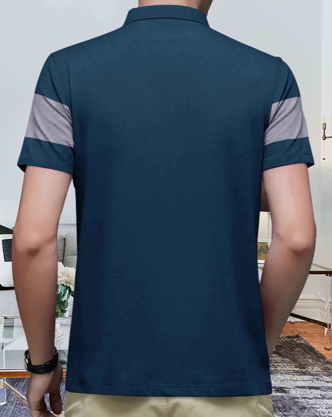 Upgrade your casual wardrobe with the Men’s Navy Blue Stripe Collar Half Sleeve T-Shirt, crafted from high-quality mercerized cotton for a smooth, durable, and refined feel. The soft fabric ensures superior comfort while offering excellent breathability for all-day wear.
