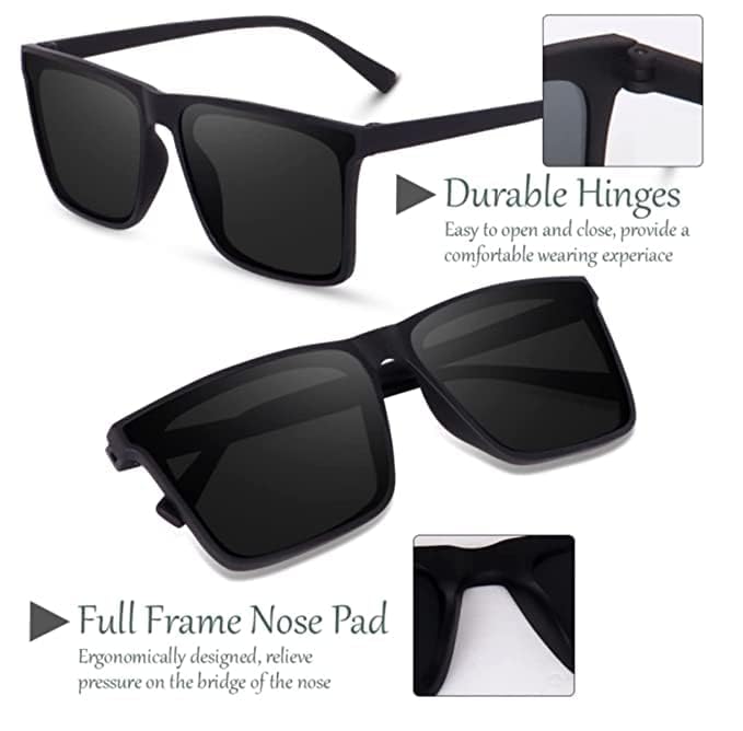 The high-quality black lenses reduce glare and maintain true color visibility, making them perfect for daily outdoor use. With 100% UV protection, your eyes stay shielded from harmful rays during bright sunny days. The lightweight frame ensures all-day comfort, making these sunglasses an ideal go-to accessory for travel, driving, vacations, and casual outings.