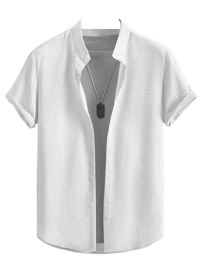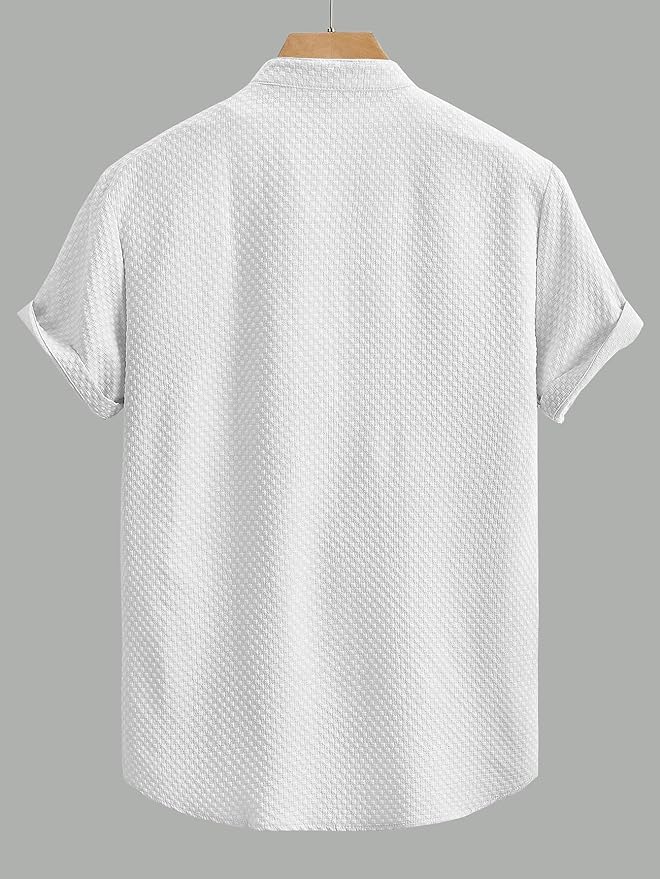 SWADESI STUFF Mens Stylish Polycotton Regular Fit Chinese Collar Half Sleeve Shirt