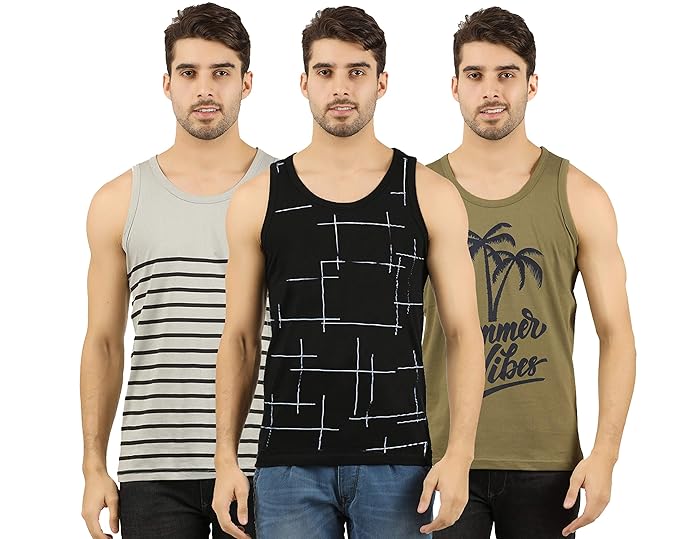 THE ARCHER Men's Cotton Printed Vest (Pack of 3)