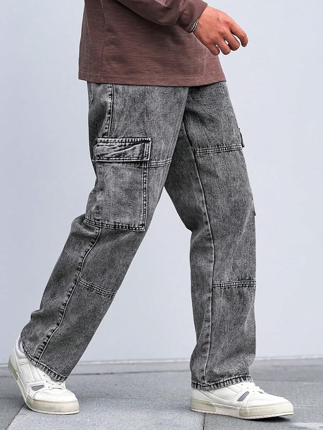 URBAN POCKETS Jeans for Men | Denim Cargo Pants with Baggy Fit Utility Pockets & Streetwear Stitch Design (Cargo-U01-U02)