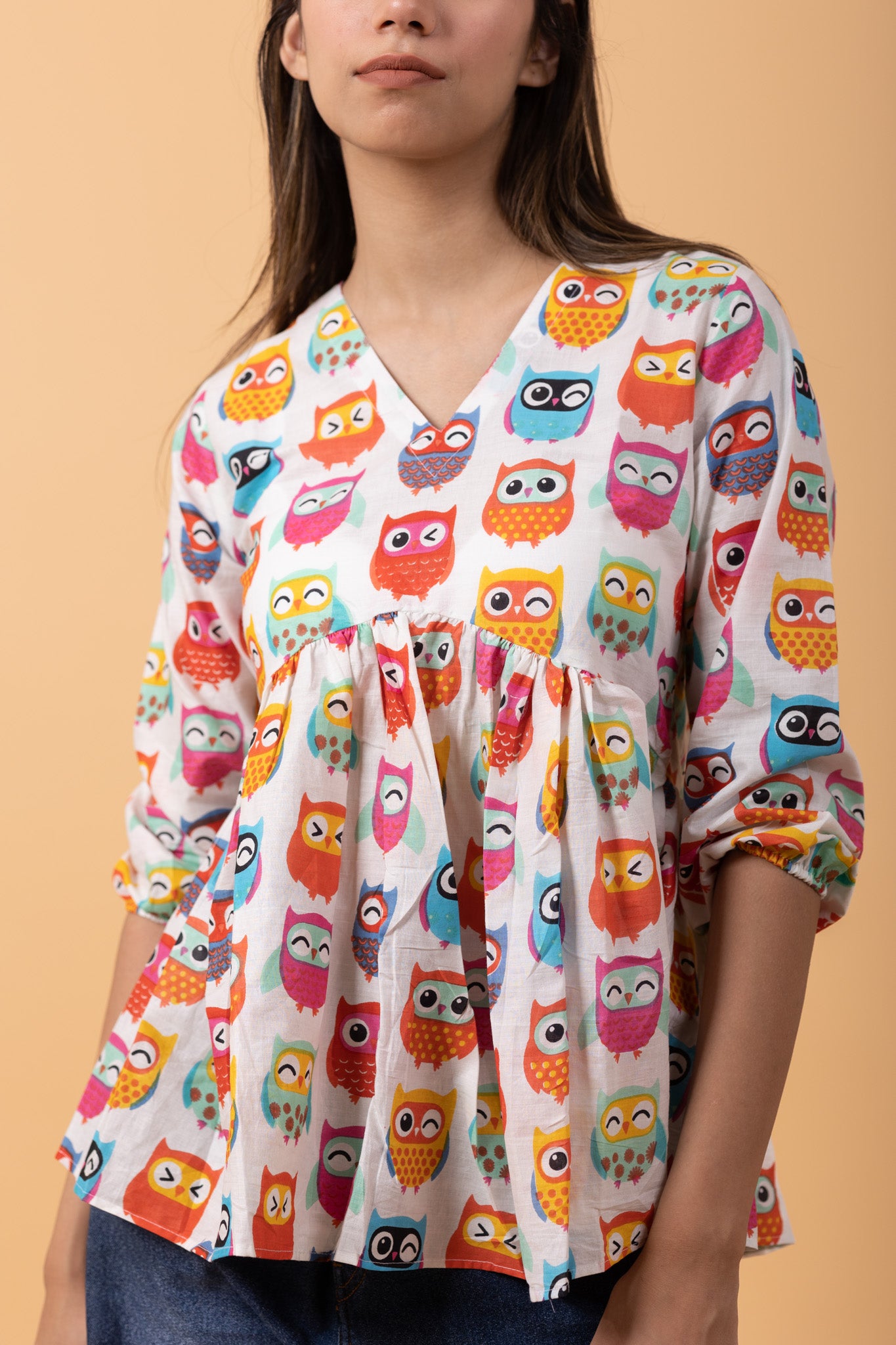 Beat the summer heat in style with this White Owl Printed 100% Cotton Short Kurti, designed for comfort, breathability, and effortless fashion. Perfect to pair with jeans for college, office, or casual outings.