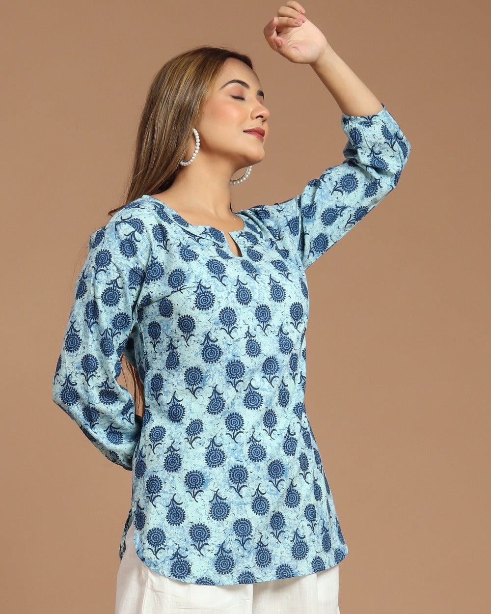 Celebrate traditional craftsmanship with our Printed Short Kurti, crafted from high-quality Indian cotton cambric and printed by skilled local artisans in Jaipur. The breathable fabric with a high thread count delivers unmatched comfort, making it ideal for daily wear, work, outings, and casual gatherings.