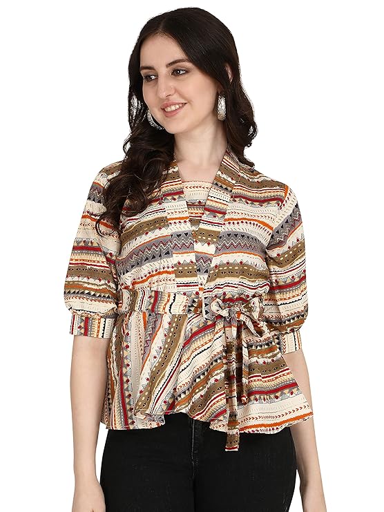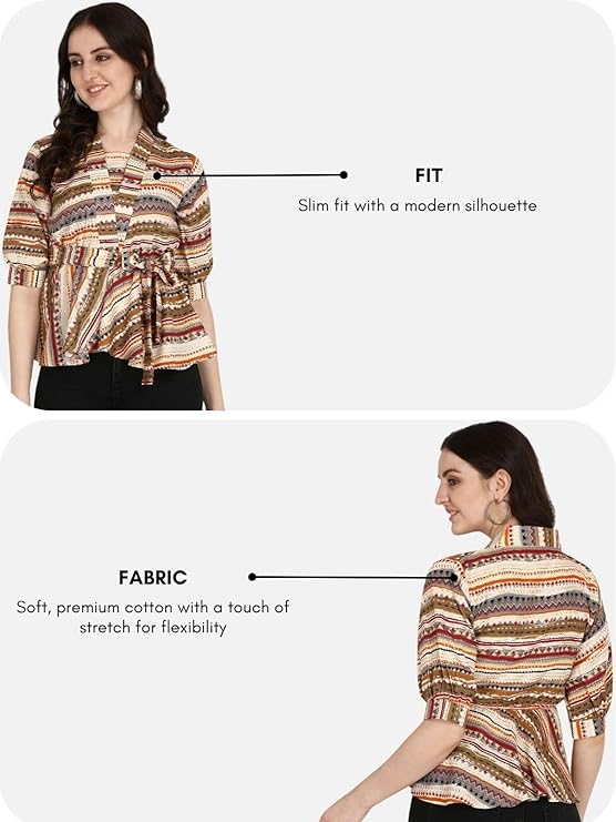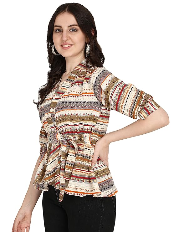 Designed with a trendy printed pattern, half sleeves, and a relaxed silhouette, this top works perfectly for casual outings, beach days, office casuals, and party occasions. Whether paired with jeans, jeggings, trousers, or shorts, it adds a touch of elegance to any look.