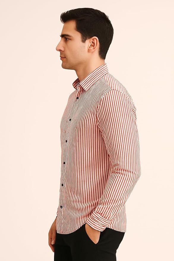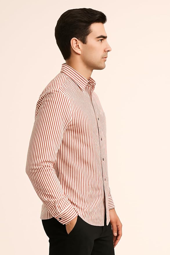 Yellow Dash Men's Cotton Striped Shirt | Casual & Formal Wear | Single Chest Pocket | Full Sleeve, Slim Fit